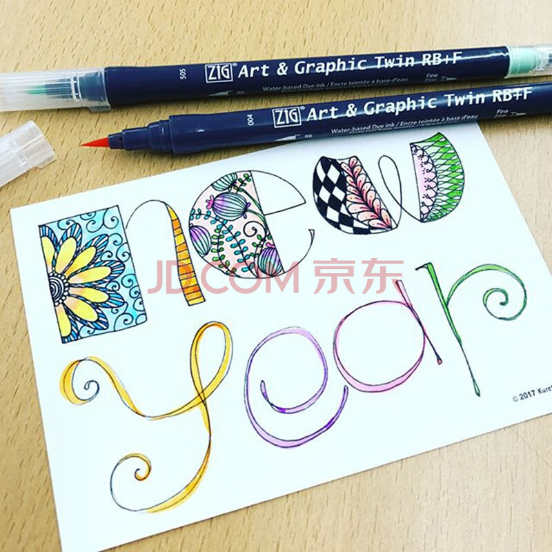 商品相册:吴竹(KURETAKE)进口ZIG双头软毛水彩笔深绿色软毛硬笔两用单支装TUT-95-055第