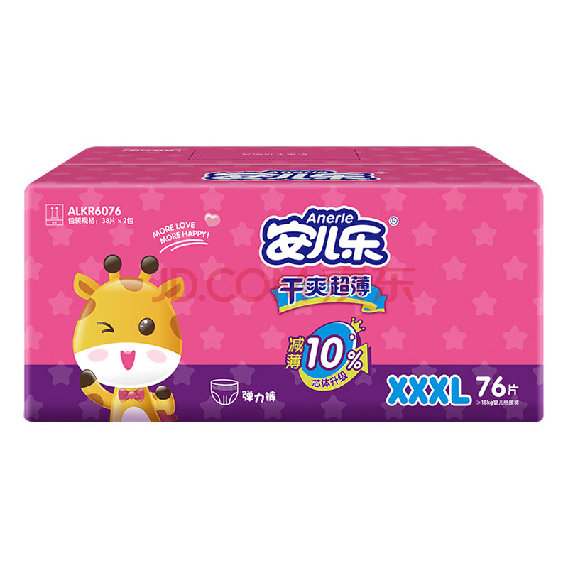 商品相册:安儿乐(Anerle)干爽超薄拉拉裤XXXL76片(17kg以上)尿不湿【品牌直供 安心品质】第