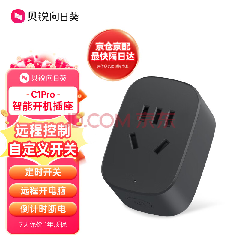 商品相册:贝锐向日葵智能插座C1pro 开机插座远程控制wifi插座定时开关远程开电脑倒计时断电独立安全门阻燃壳体 黑色第