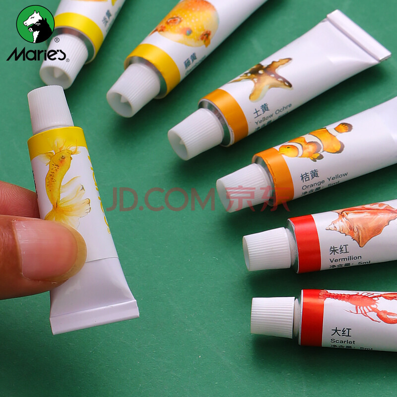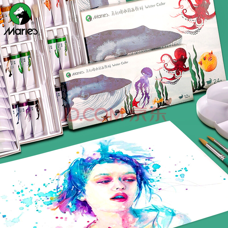 商品相册:【全网低价】马利(Marie's)水彩颜料盒装12色5ml 带画笔便携学生儿童水彩绘画套装 膏体细腻色彩饱和清洗方便W-1112美术写生第1张/共5