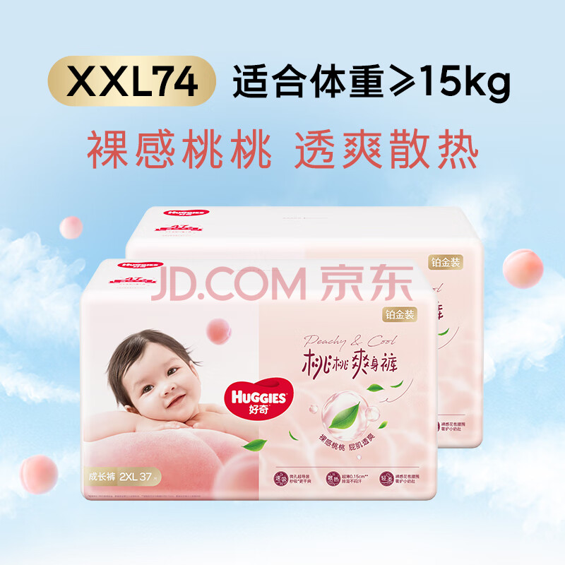 商品相册:好奇(Huggies)铂金装小桃裤成长裤XXL74片(15kg以上)尿不湿【透爽散热】第