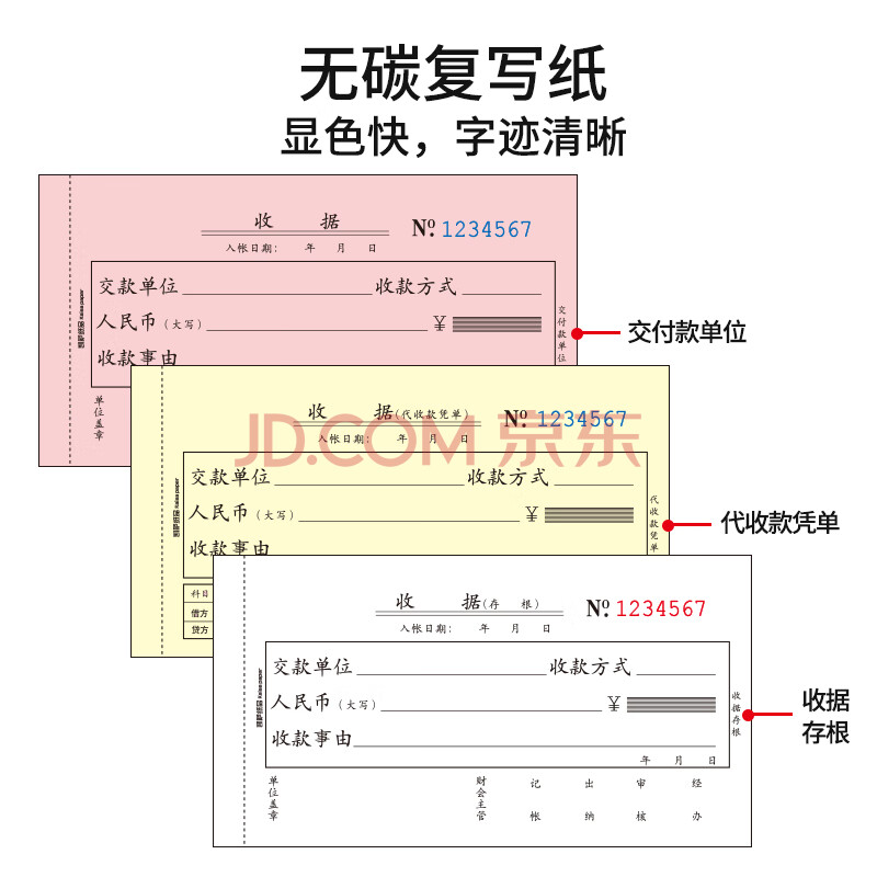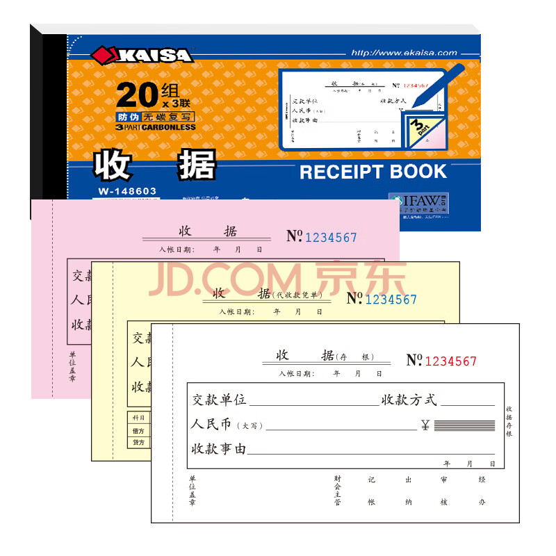 商品相册:凯萨(KAISA)48K/三联收据 3联20组无碳复写票据财会单据手写打印票据 10本装(173*94mm)财务用品 W148603第
