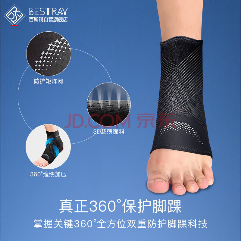 商品相册:百斯锐3D超薄运动护踝绷带篮球跑步脚踝扭伤护具防崴脚保护固定护脚踝套第