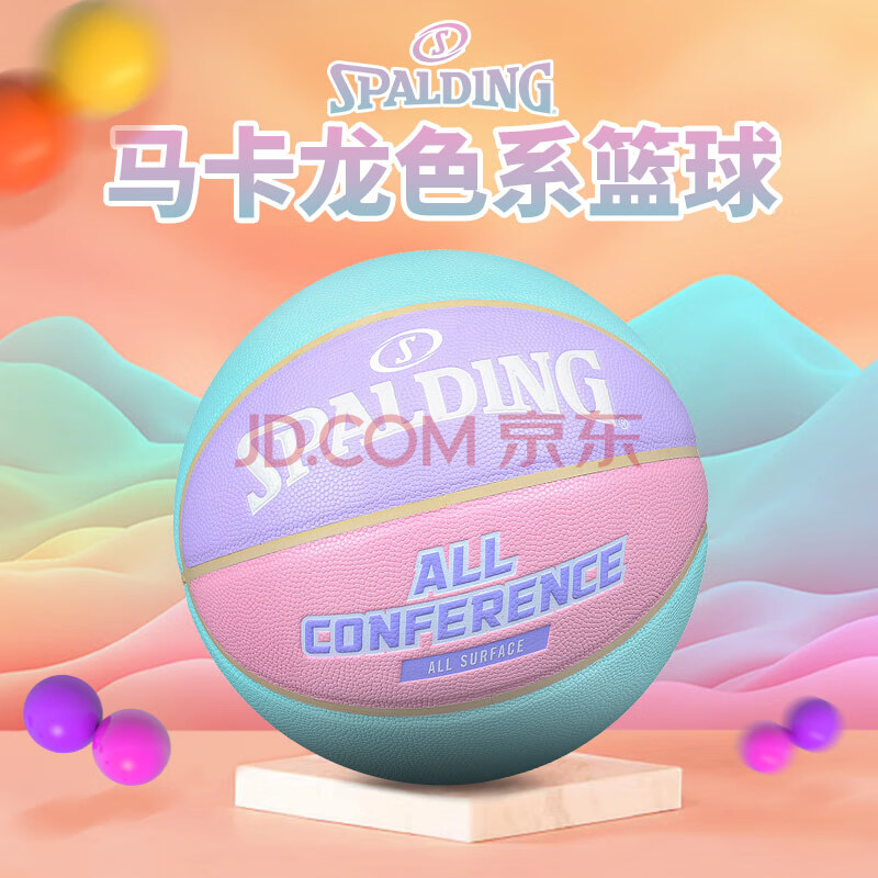 商品相册:斯伯丁马卡龙色系礼物礼品粉色少女款PU材质7号室内外篮球76-897Y第