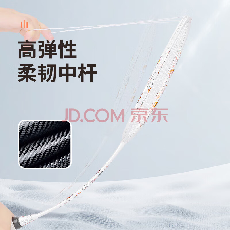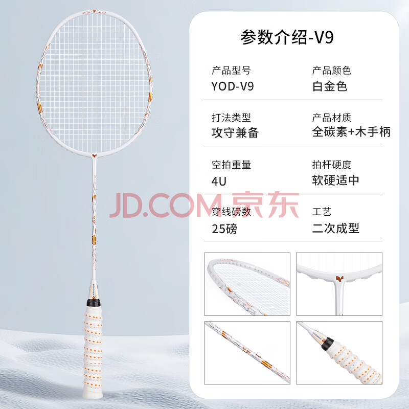 商品相册:尤迪曼白金色二次成型羽毛球拍4U全碳素V9单拍(已穿线)第