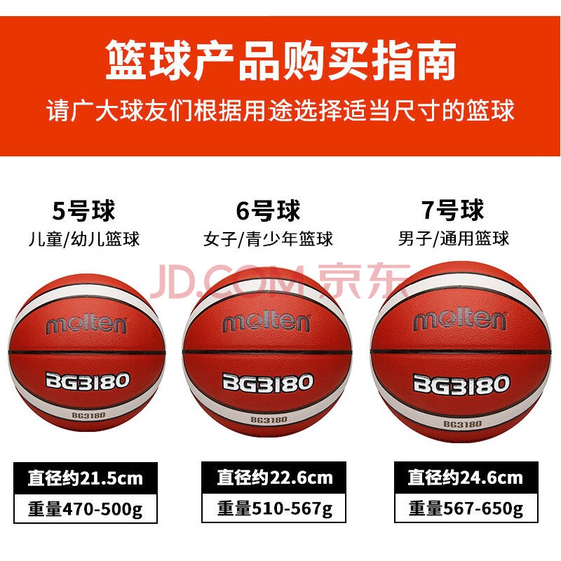 商品相册:摩腾molten篮球6号女子B6G3180室内外通用比赛训练PU篮球第1张/共6