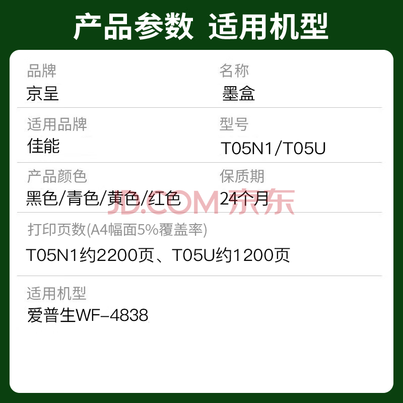 商品相册:京呈T05U1 黑色墨盒适用爱普生(EPSON)WF-4838打印机机型墨粉盒WF4838墨水盒第
