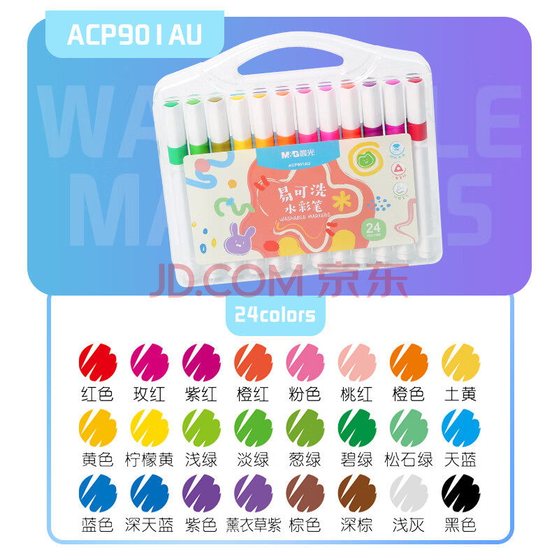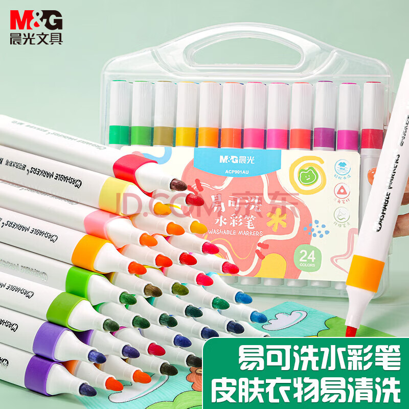 商品相册:晨光(M&G)文具24色易可洗水彩笔儿童三角杆脸彩涂鸦画笔学生美术绘画安全开学礼物ACP901AU第