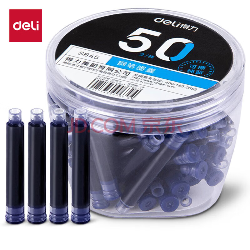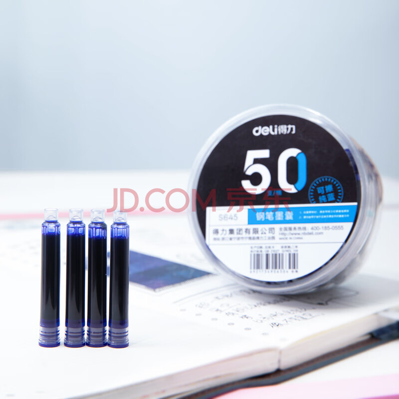 商品相册:得力(deli)(deli)钢笔墨囊 学生钢笔墨水笔墨囊 可替换 纯蓝墨囊 50支/盒大包装 S645第