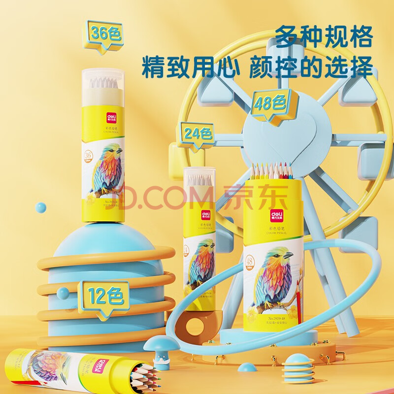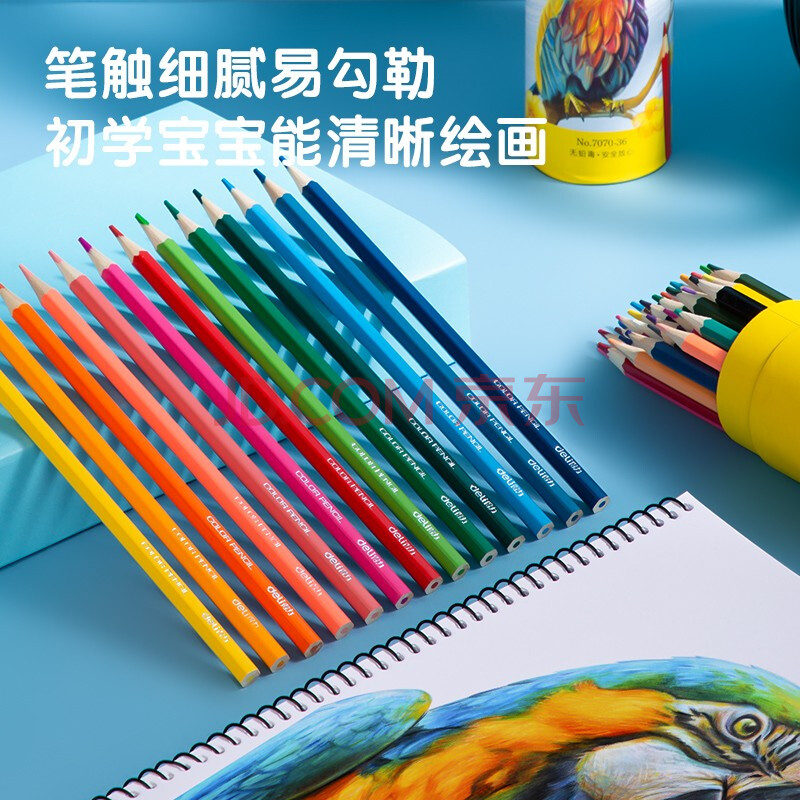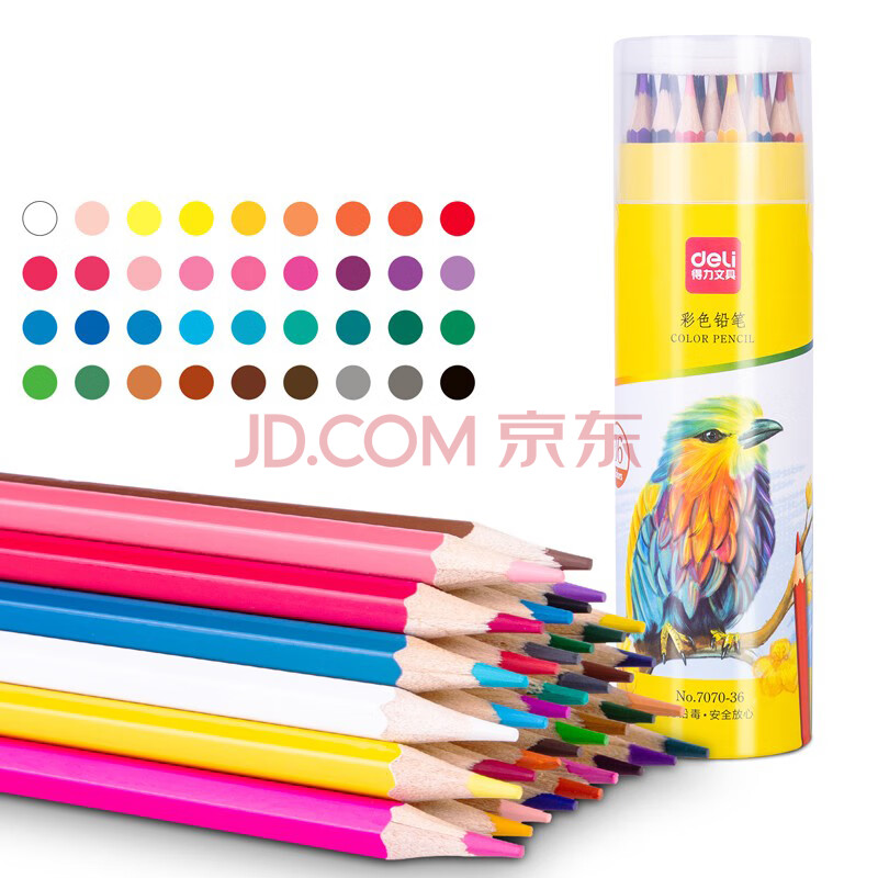 商品相册:得力(deli)36色油性彩色铅笔原木六角杆彩色铅笔学生涂色专业美术画笔套装文具女孩儿童礼物涂鸦HM455-36彩笔第