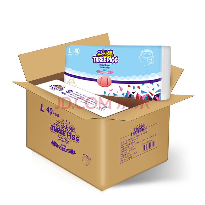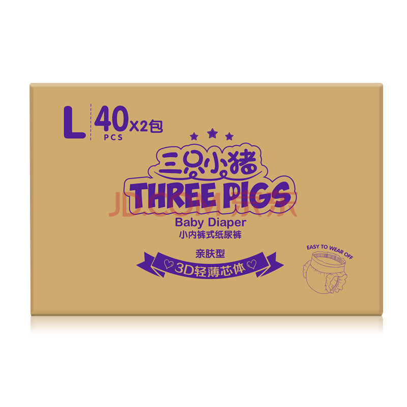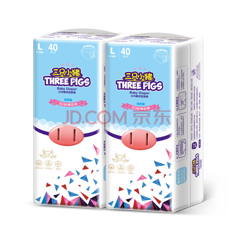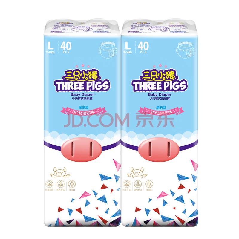 商品相册:三只小猪3D轻薄婴儿拉拉裤L码80片 超薄透气尿不湿尿片尿布(9-14KG)第