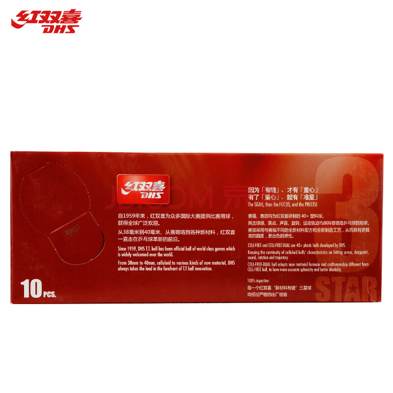 商品相册:红双喜 赛顶40+三星白3星乒乓球ABS新材料有缝球白色(10只装)第