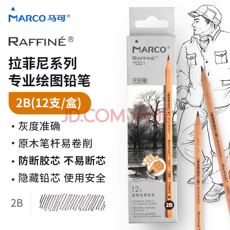 商品相册:【全网低价】马可(MARCO)2B铅笔12支素描铅笔 原木专业美术六角杆手绘速写绘图笔纸盒装学生初学者考试画画专用7001-2B 速写 马克笔绘画第