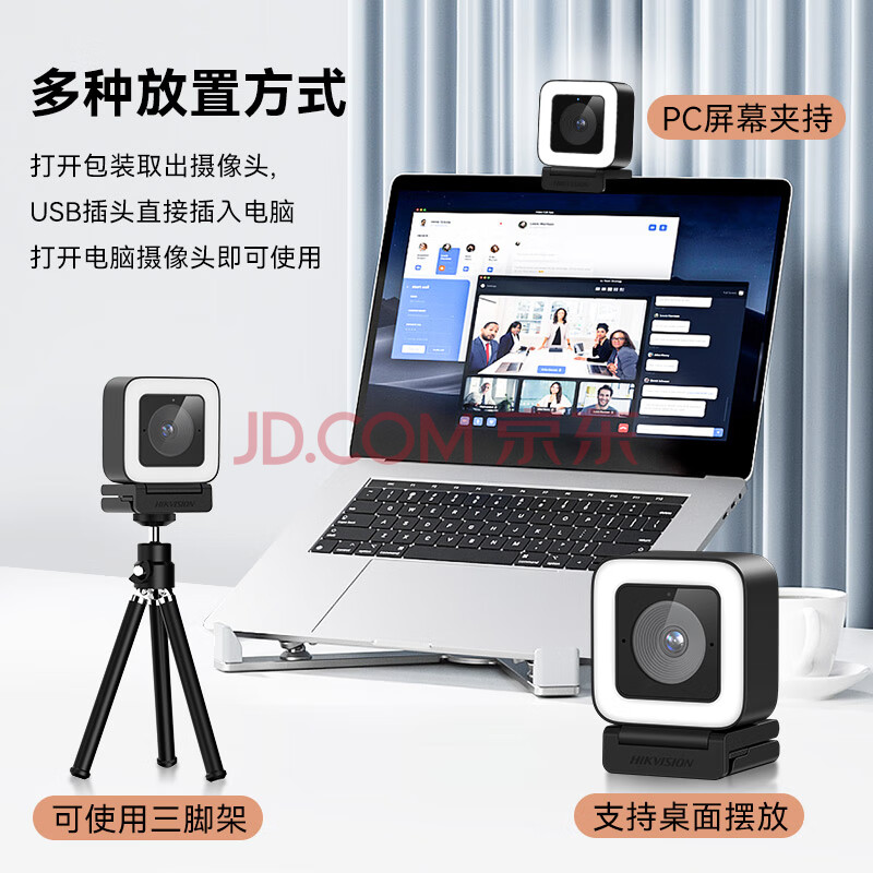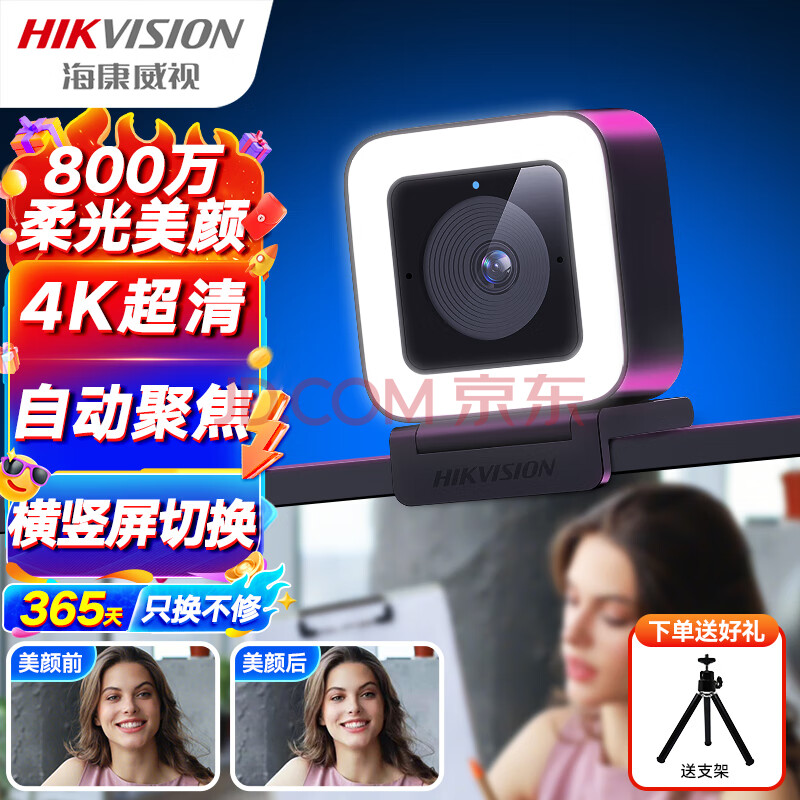 商品相册:HIKVISION海康威视直播摄像头4K超清带麦克风自动对焦视频会议办公网课家用直播带货电脑摄像头U28第