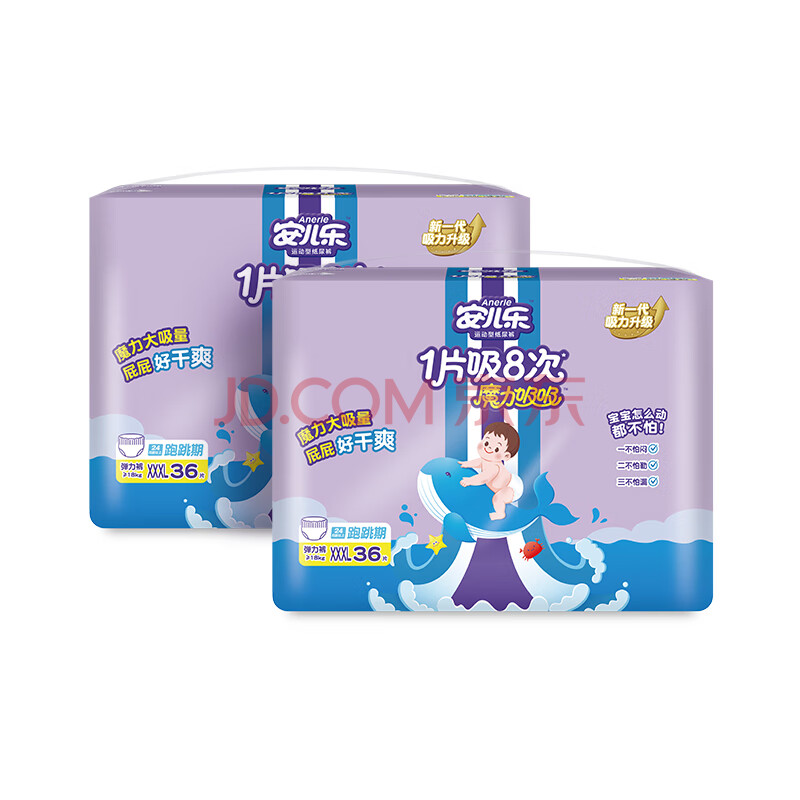 商品相册:安儿乐(Anerle)魔力吸吸拉拉裤XXXL36片*2(18kg以上)大吸量尿不湿【夜用专研】第