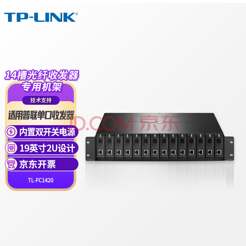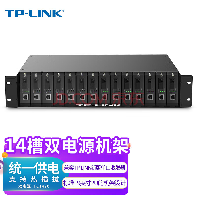 商品相册:TP-LINK普联双电源14槽位光纤收发器专用机架单纤双纤单口光电转换器机箱标准19英寸2U机柜TL-FC1420第