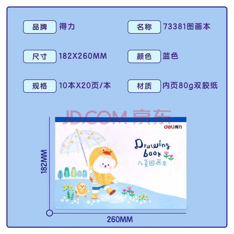 商品相册:得力(deli)得力(deli)10本200张加厚儿童空白图画本幼儿园小学生美术绘画本蓝色学生开学文具第
