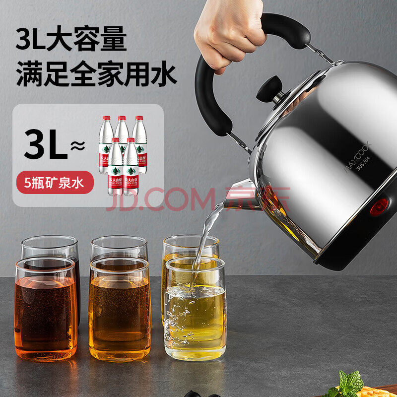 商品相册:美厨(MAXCOOK)电水壶 304不锈钢烧水壶响水壶 3L加厚自动断电防干烧 TB-1011第