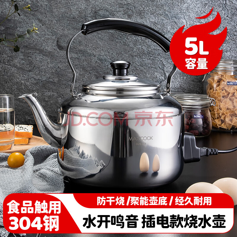 商品相册:美厨(MAXCOOK)电水壶 304不锈钢烧水壶响水壶 5L加厚中式鸣音 防干烧TB-Z24第