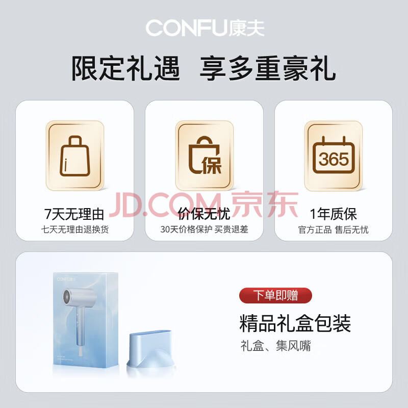 商品相册:康夫(CONFU)电吹风机大功率1800W速干负离子护发宿舍家用生日礼物送女友吹风筒 KF-3157冰川蓝第