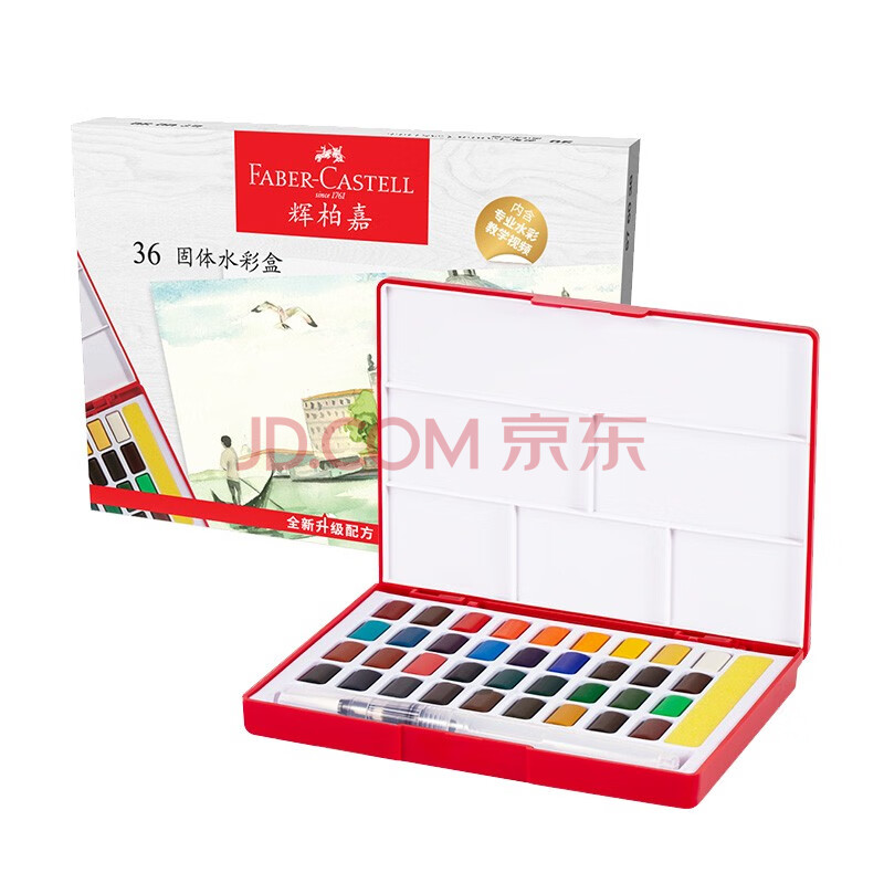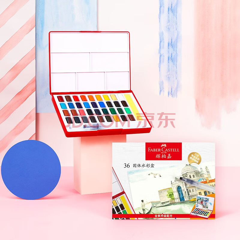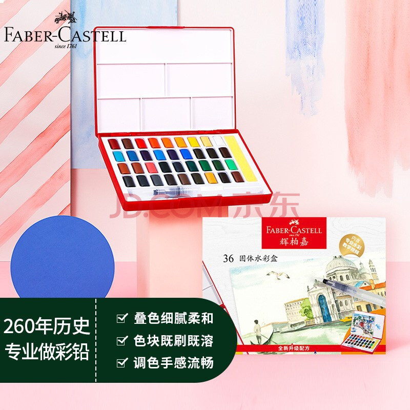 商品相册:辉柏嘉(Faber-castell)固体水彩36色固体颜料水彩颜料画笔套装升级版(配自来水笔吸水海绵条)576036美术写生第