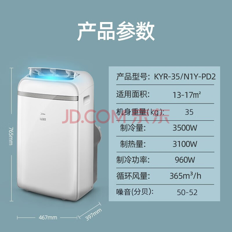 商品相册:美的(Midea)移动空调冷暖一体机1.5匹 家用厨房空调免安装免排水 KYR-35/N1Y-PD2第