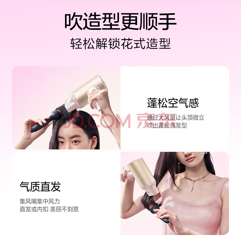 商品相册:SOOCAS素士【母亲节礼物】电吹风筒负离子吹风机宿舍学生电吹风智能恒温吹风筒无叶吹风机男女生 H5粉色第