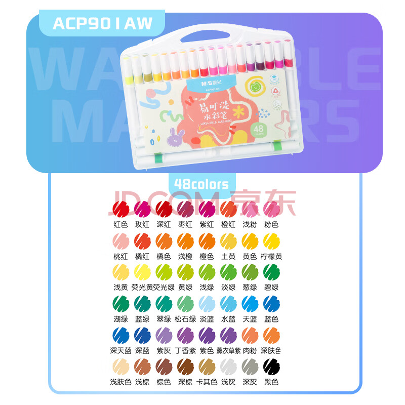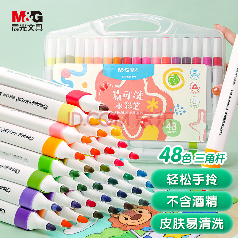 商品相册:晨光(M&G)文具48色易可洗水彩笔儿童三角杆脸彩涂鸦画笔学生美术绘画安全开学礼物ACP901AW第