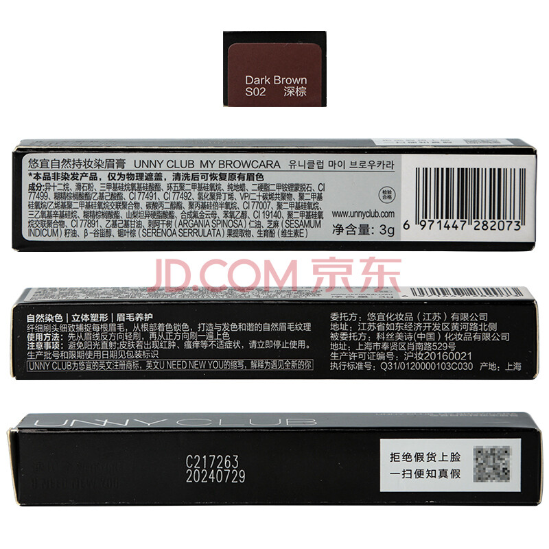 商品相册:悠宜(unny club)持妆染眉膏眉粉眉笔持久防水不晕染掉色脱妆防汗S02深棕3g第