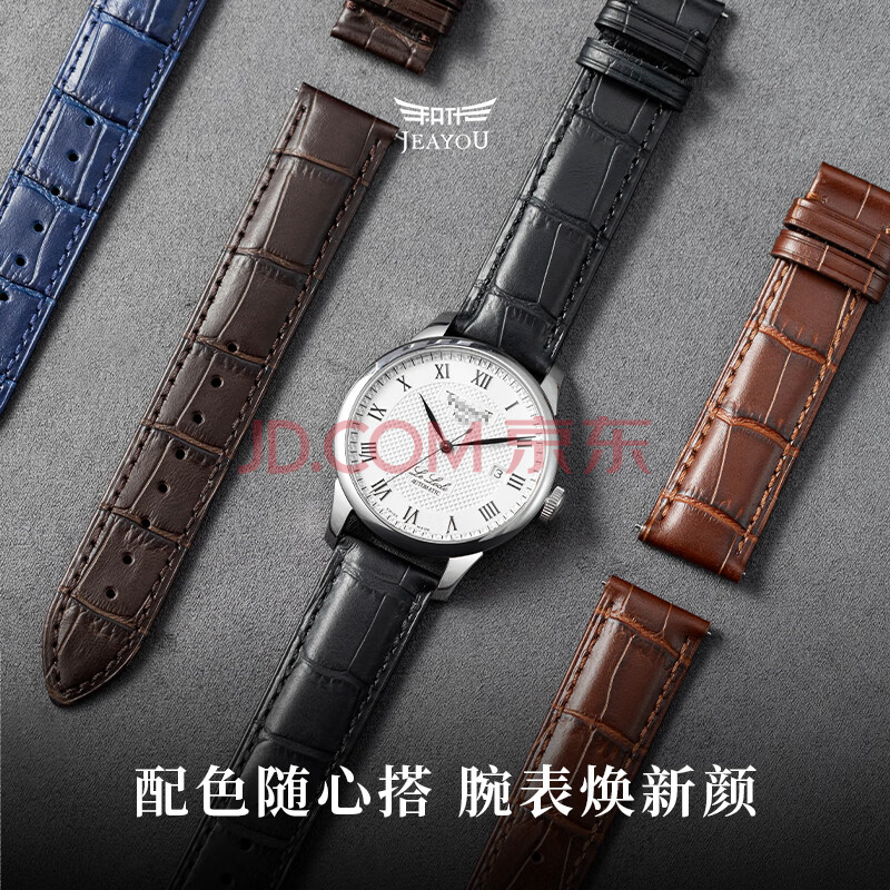 商品相册:积优(JEAYOU)适用浪琴西铁城DW卡西欧罗西尼美度阿玛尼天梭力洛克真皮手表带男第