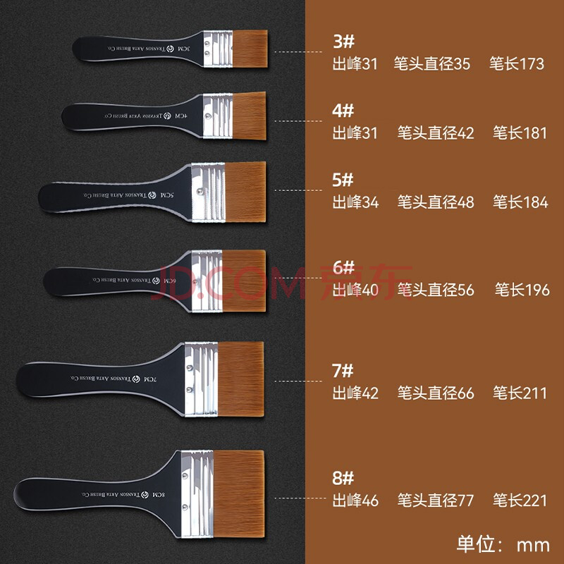 商品相册:中盛画材 尼龙板刷子套装笔刷画笔画刷刷涂墙绘漆丙烯颜料水彩水粉油画画笔绘画儿童美术排笔工具 单支4# 速写 马克笔绘画第