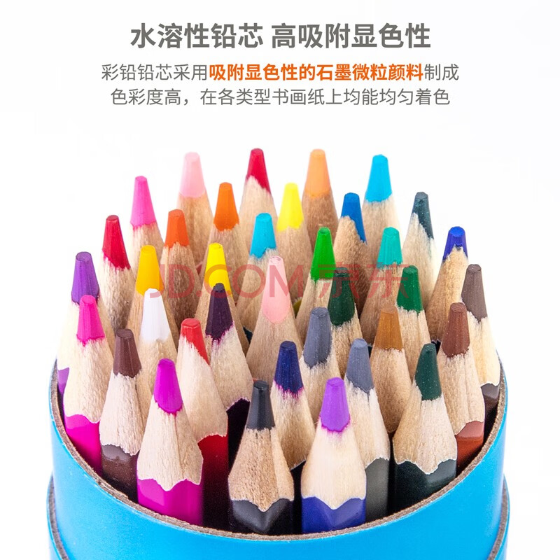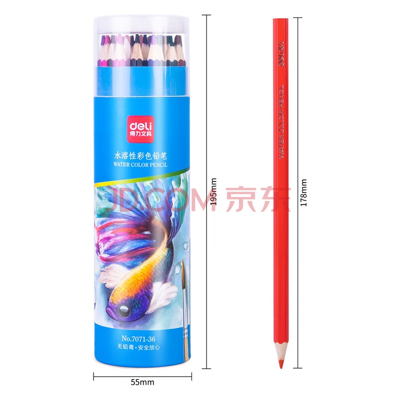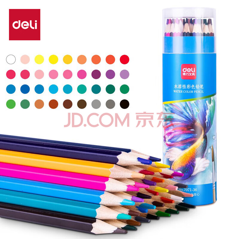 商品相册:得力(deli)36色水溶性彩铅原木六角杆彩色铅笔学生涂色专业彩绘画笔套装文具纸筒彩笔第