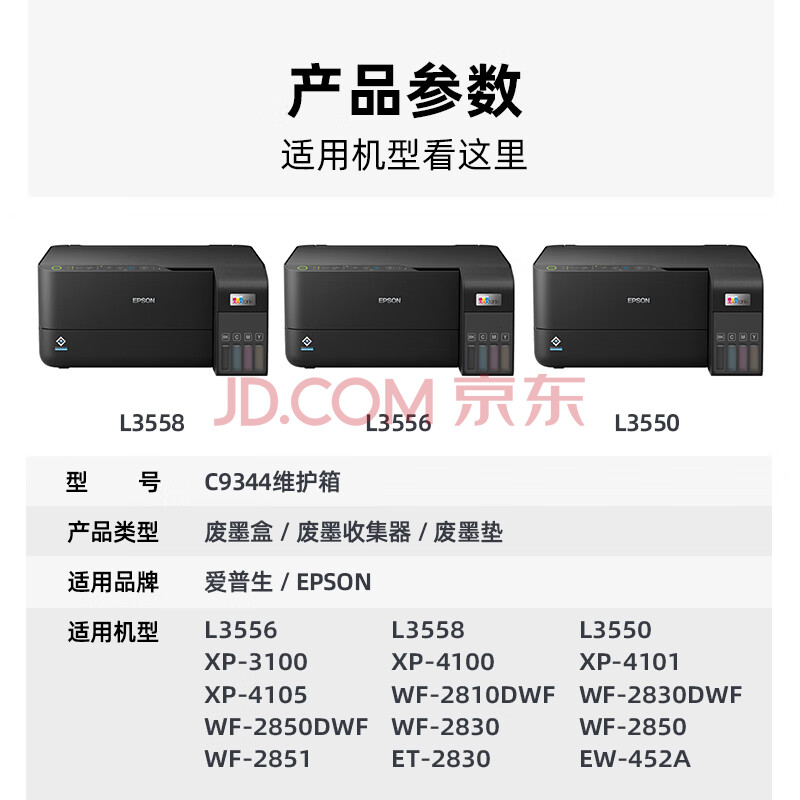 商品相册:V4INK C9344维护箱 适爱普生L3558维护箱epson废墨仓L3556打印机L3550 WF-2850废墨仓XP-3100 WF-2810 EWMB3废墨盒第