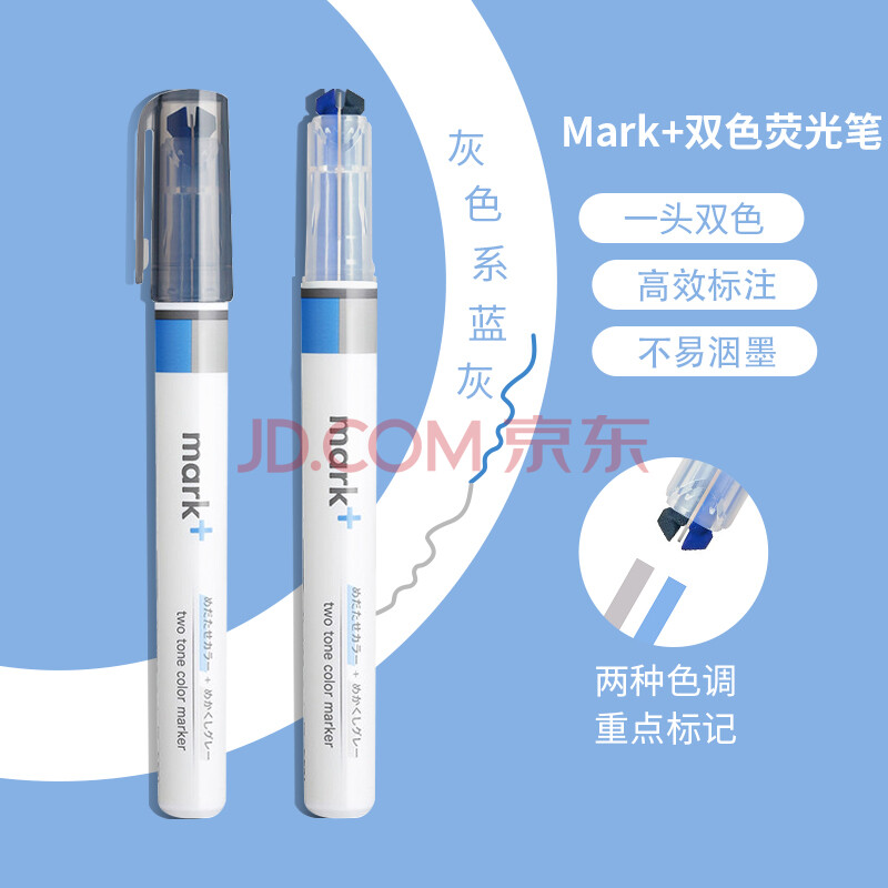 商品相册:国誉(KOKUYO)进口mark+双头划重点笔记号笔灰色系双头荧光笔 蓝色/灰色 1支装 PM-MT101BM第
