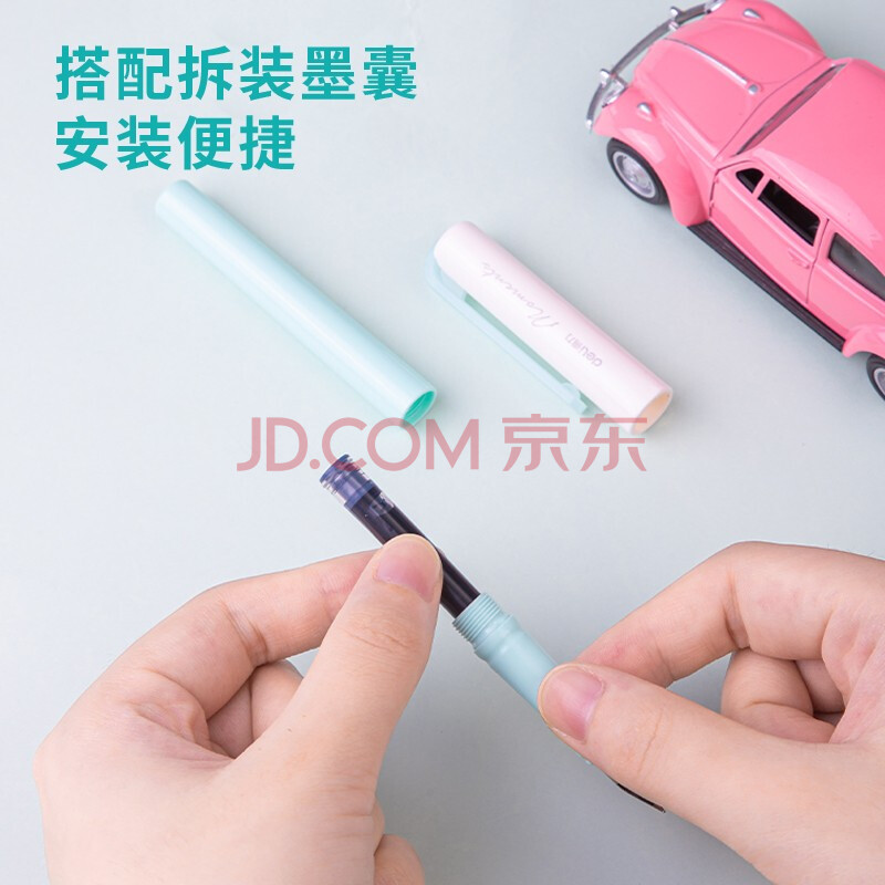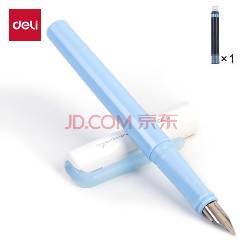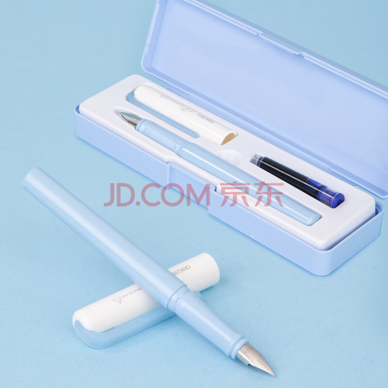 商品相册:得力EF明尖学生正姿练字钢笔套装 办公签字笔墨水笔 附笔盒 纯蓝墨囊 A932第1张/共6