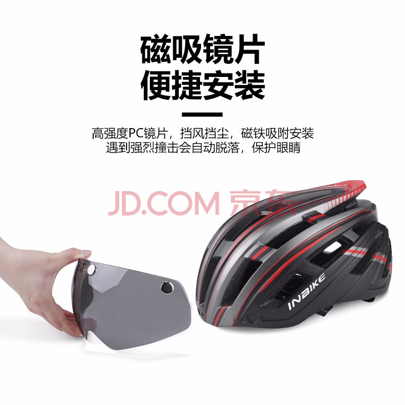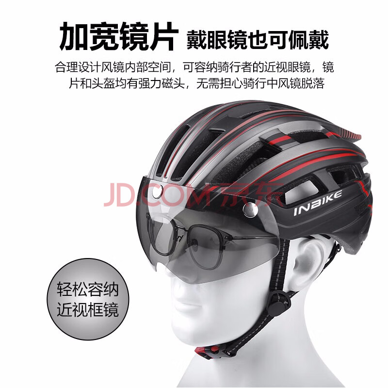 商品相册:英派山地公路自行车带风镜一体成型骑行头盔男女安全帽子单车装备第
