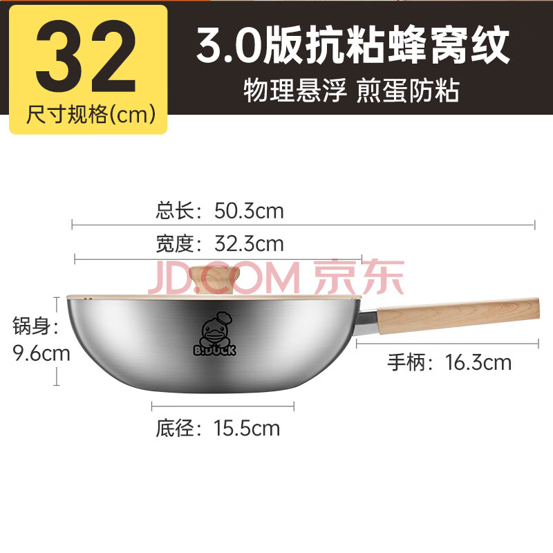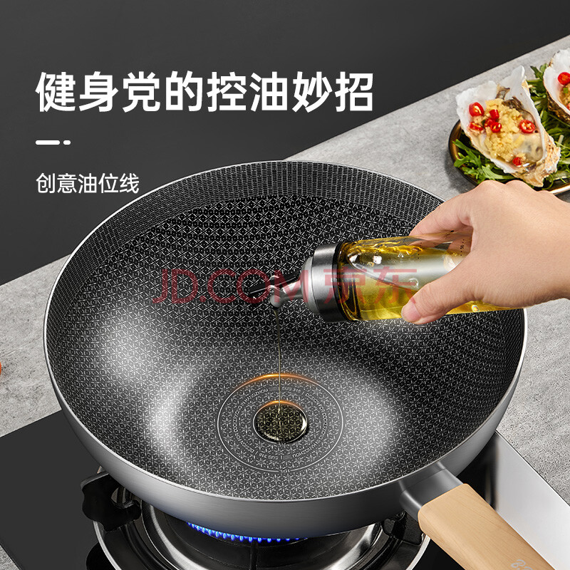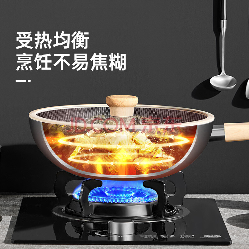 商品相册:炊大皇 316L不锈钢炒菜锅32cm 不粘平底炒锅 燃气煤气灶电磁炉通用第
