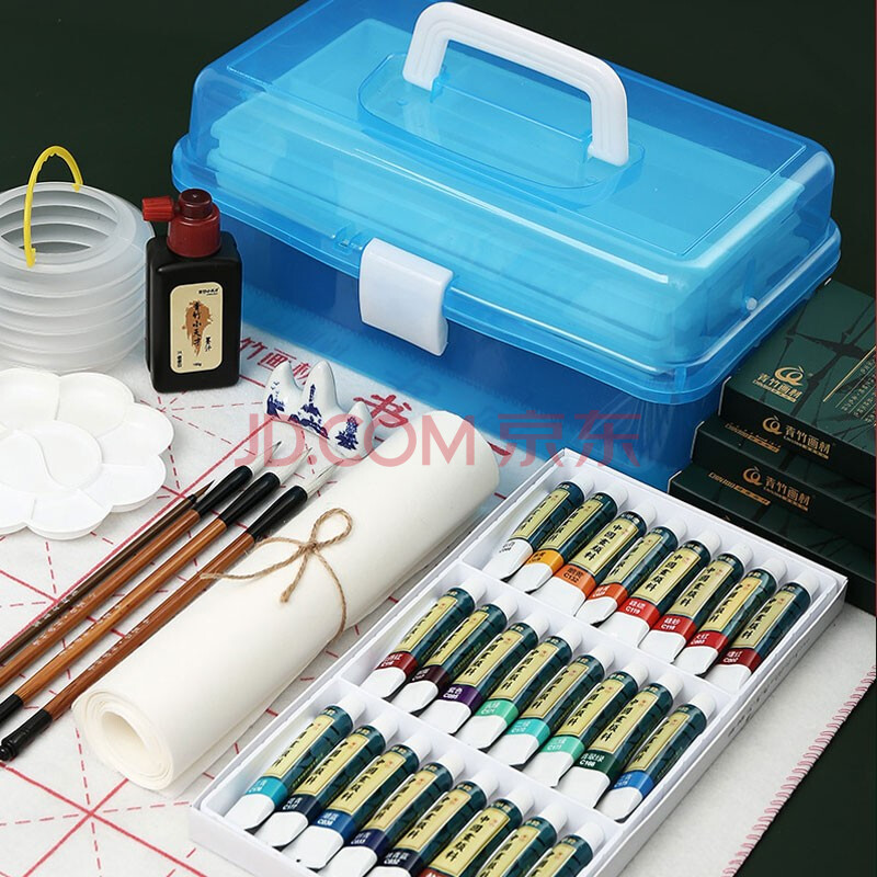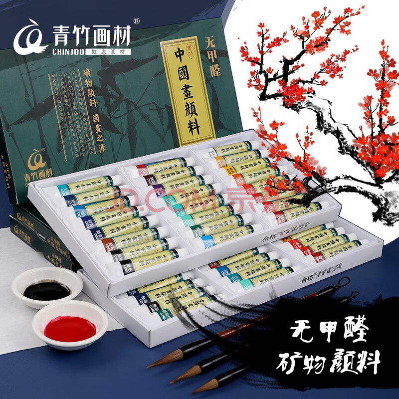 商品相册:青竹画材(CHINJOO)无甲醛国画颜料套装24色12ml初学者成人入门矿物颜料绘画工具美术写生第