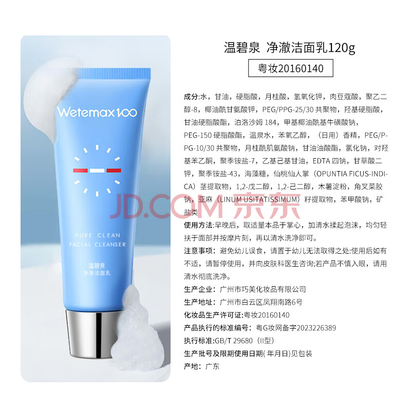 商品相册:温碧泉洗面奶 净澈洁面乳120g 护肤化妆品男女适用 深层清洁温和不紧绷第