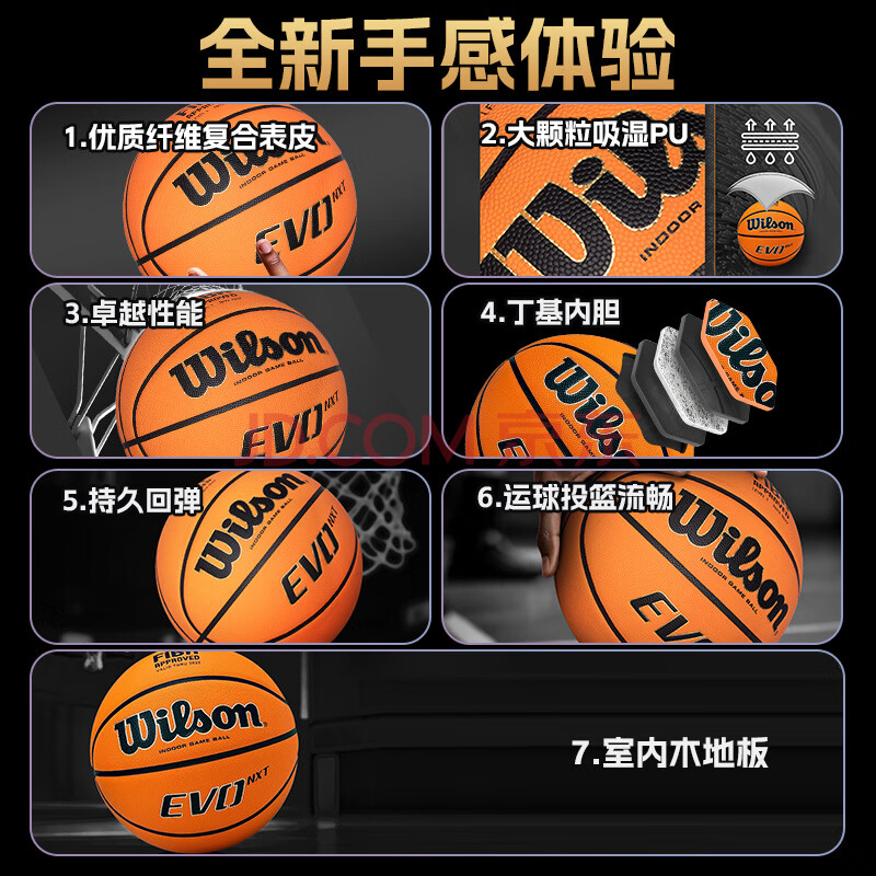 商品相册:威尔胜(Wilson)EVO NXT系列7号篮球FIBA官方认证室内比赛用球超纤PU皮革成人篮球第