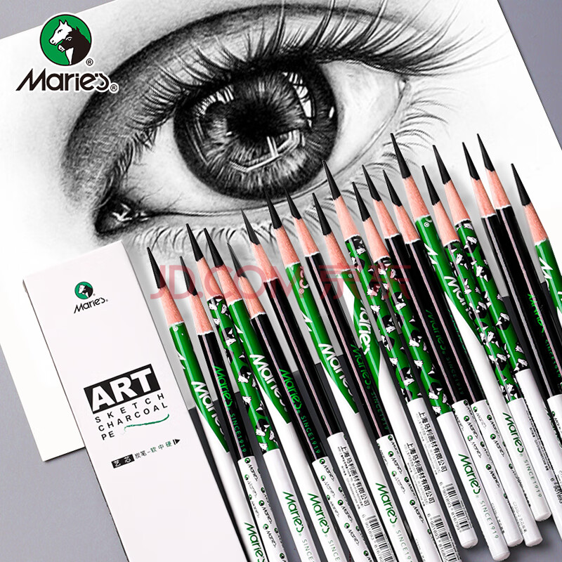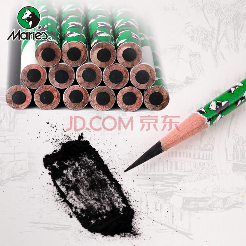 商品相册:马利(Marie's)中性素描铅笔12支装 素描铅笔美术专用绘画软中硬碳笔 学生初学者考试画画专用C7370-4美术写生第