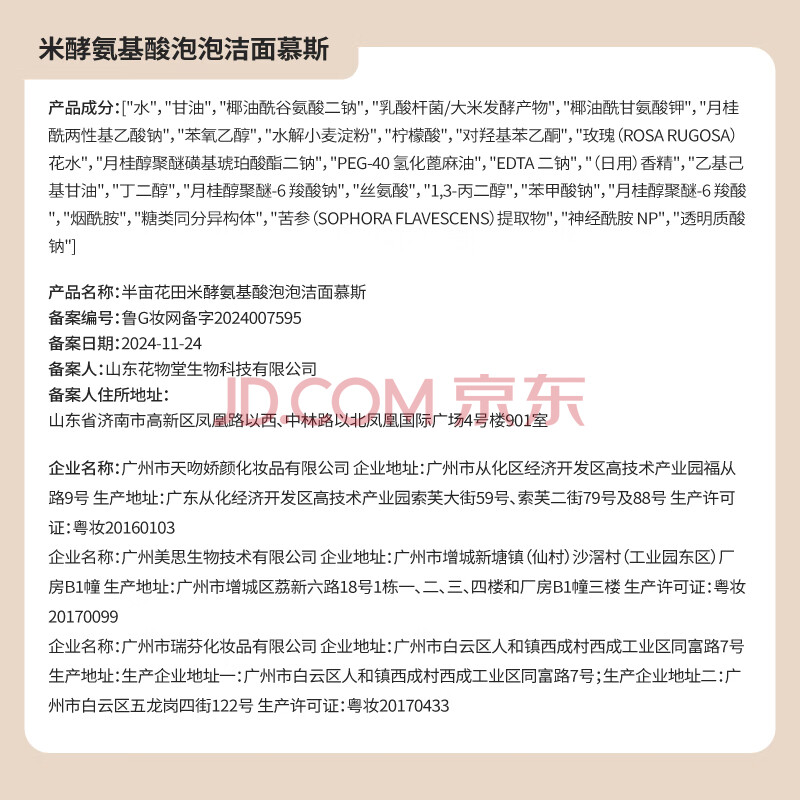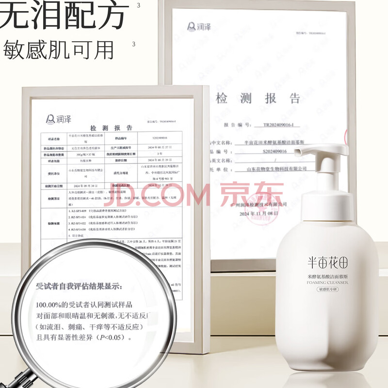 商品相册:半亩花田氨基酸洁面慕斯洗面奶米酵泡沫洁面乳控油清洁男女士送礼物500g第