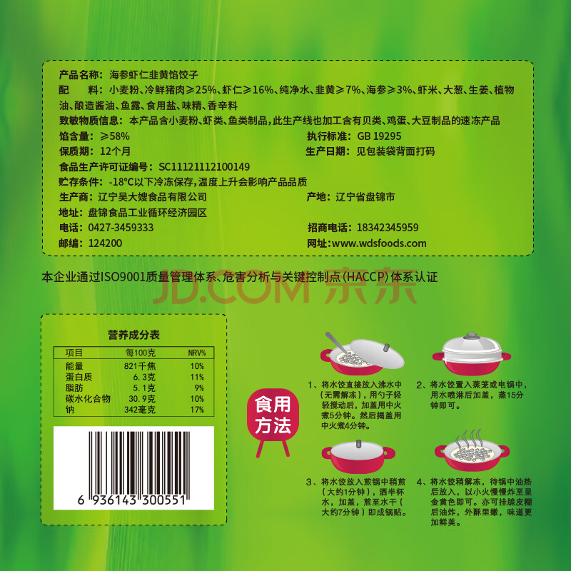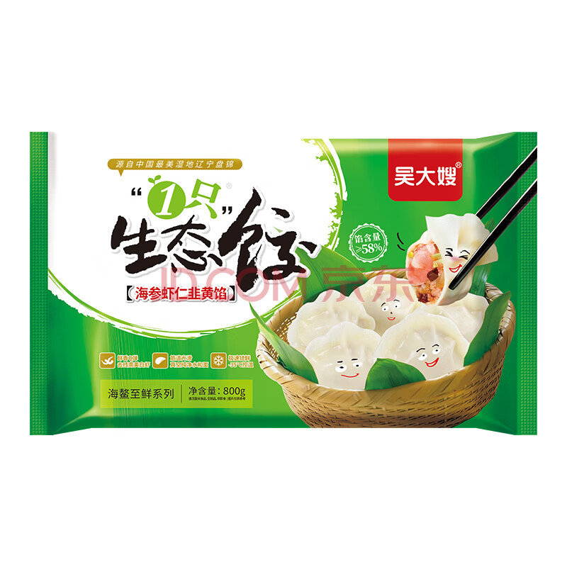 商品相册:吴大嫂 东北水饺 海参虾仁韭黄 800g 40只 海鲜饺子 速冻蒸饺煎饺速食第1张/共9
