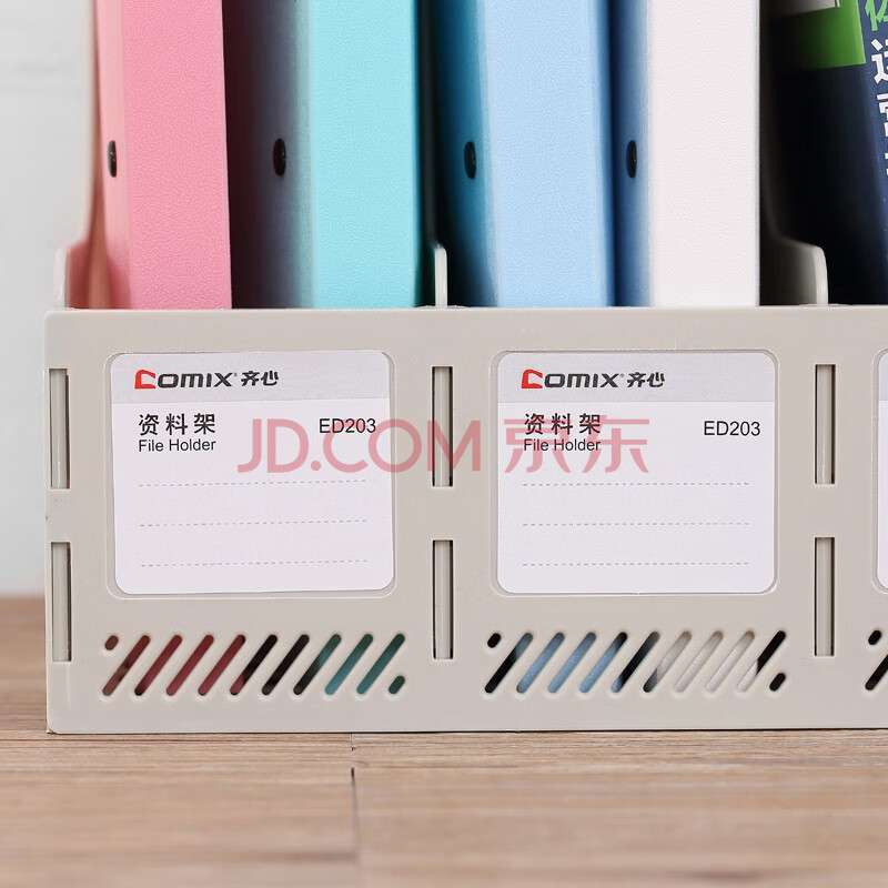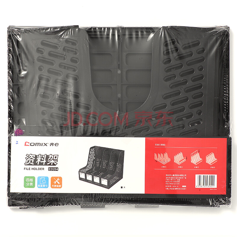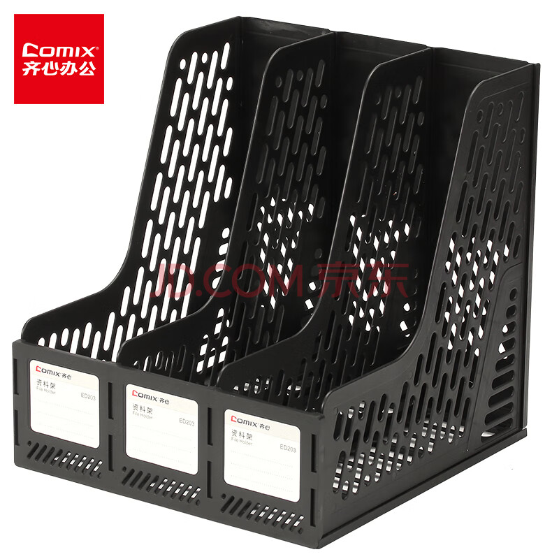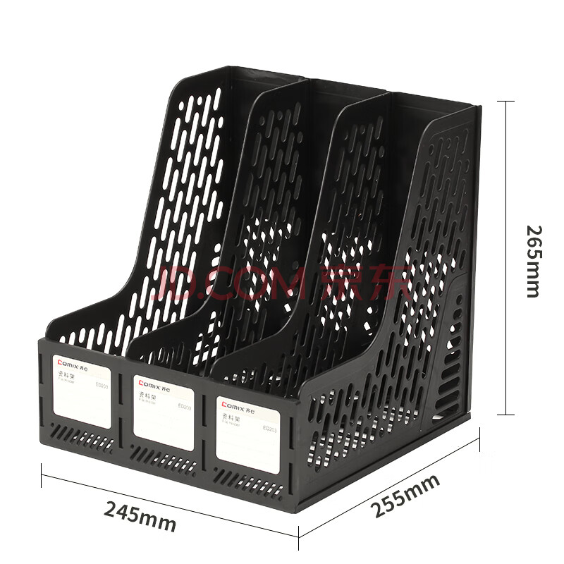商品相册:齐心(COMIX)三联镂空桌面文件框 三栏带标签稳固文件栏/文件筐/资料框 办公用 245*255*265 黑ED203/EB719第