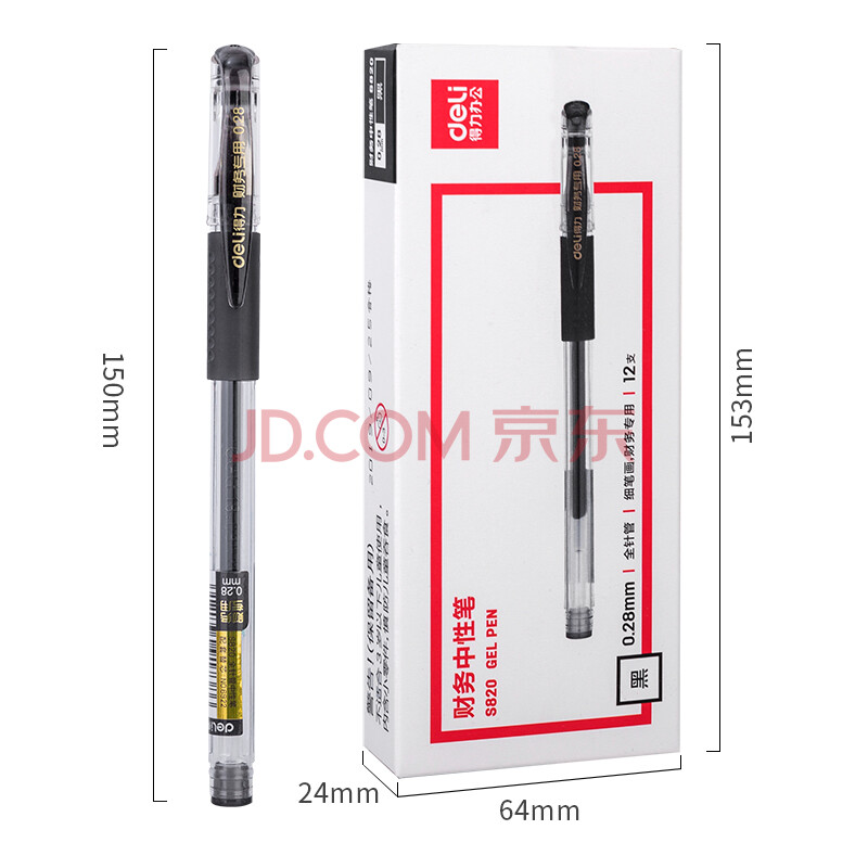 商品相册:得力(deli)0.28mm财务专用中性笔 办公用品 全针管12支盒S820第