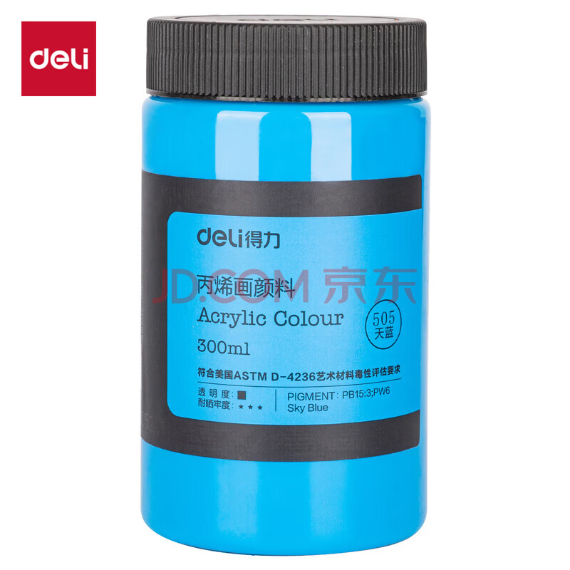 商品相册:得力(deli)天蓝丙烯颜料300ml大容量墙绘手绘DIY画画DIY大桶装大瓶美术绘画工具73875美育工具第