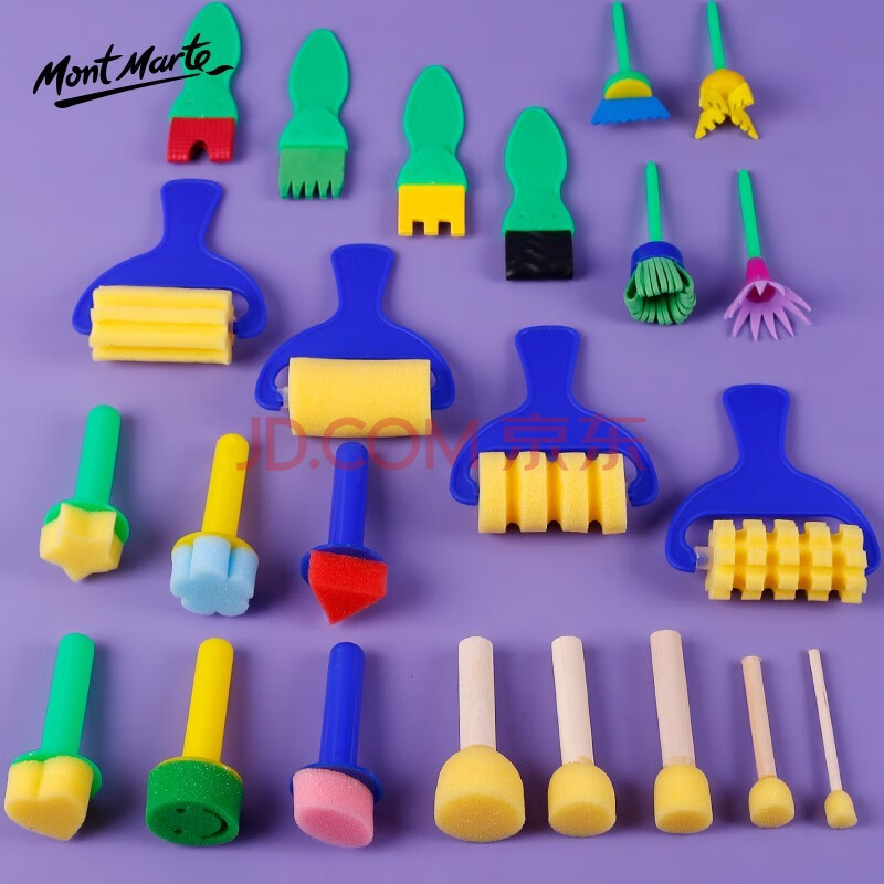 商品相册:【全网低价】蒙玛特(Mont Marte)美术海绵刷23件 滚筒儿童画画海绵棒水粉水彩颜料画刷套装 早教绘画涂鸦工具SX-PNX23JT美术写生第