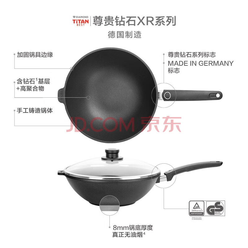 商品相册:WOLL德国制造尊贵钻石XR系列30cm燃气灶家用无油烟不粘炒锅炒锅第
