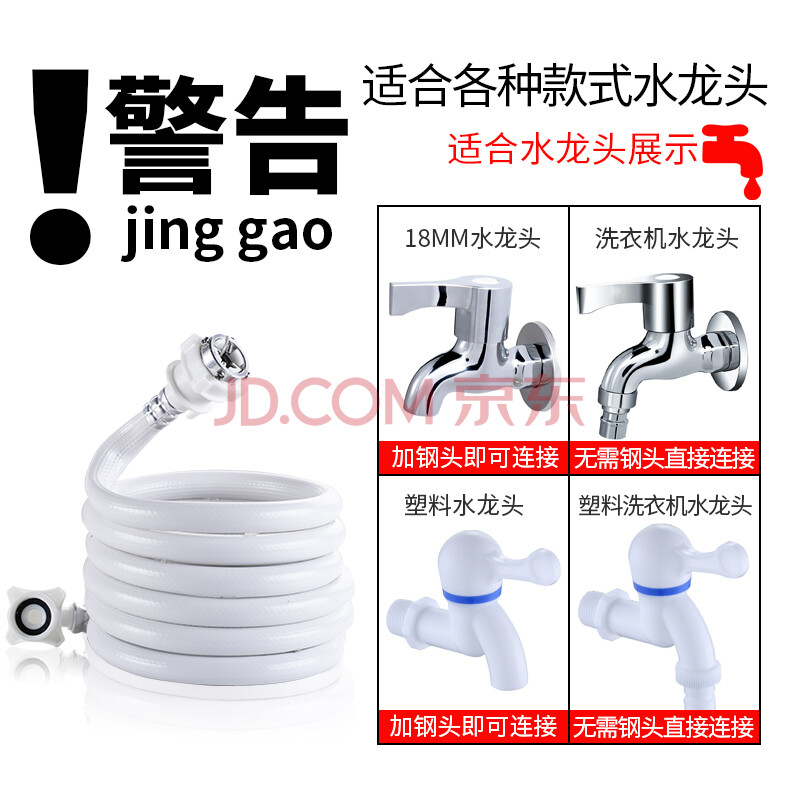 商品相册:贝石 洗衣机进水管 加厚通用滚筒波轮洗衣机进水管加长管接水管上水管注水延长软管接头配件 白色4米第