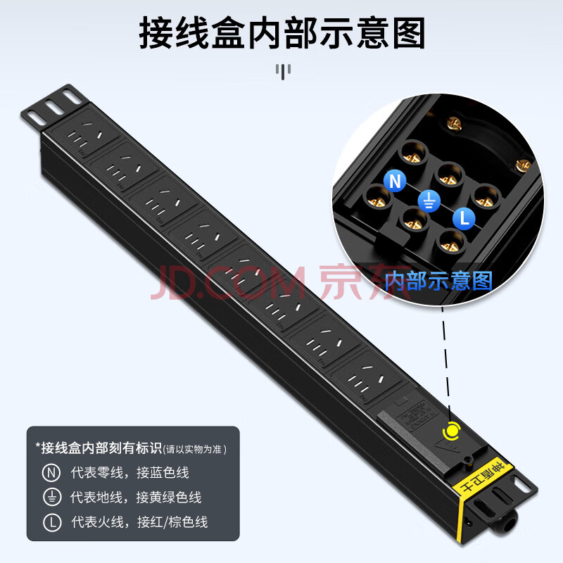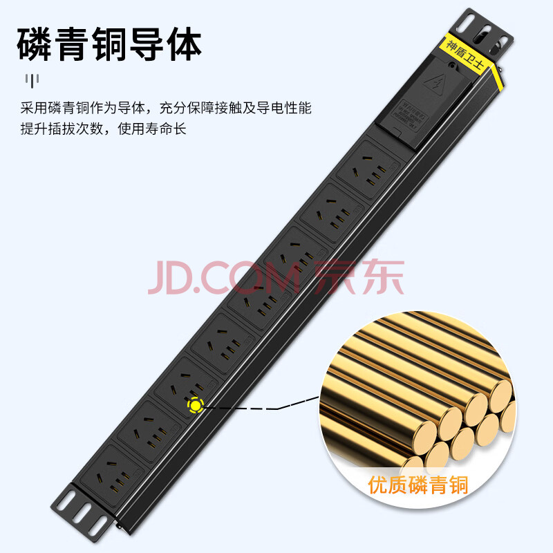 商品相册:神盾卫士(SDWS)PDU机柜插座8位10A大功率插线板新国标工业插排新国标五孔自接线盒不带线SC080BD第